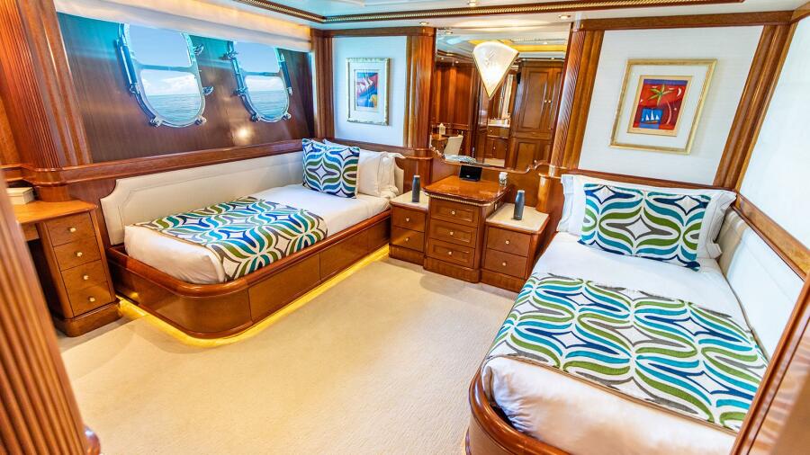 - Accommodations for 13 Guests in Six Spacious Staterooms Arranged as a Master Ensuite, VIP, Two Queens, Two Twins and One Pullman
