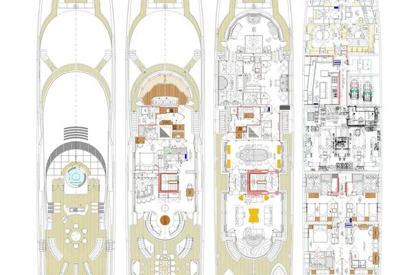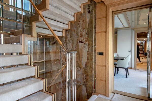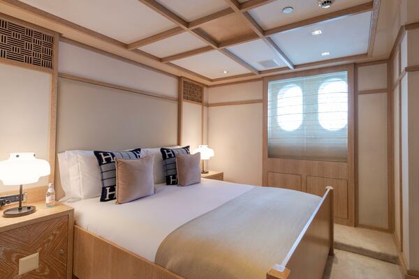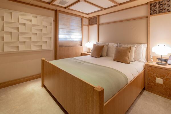 Sleeps up to 12 guests in the Owner’s party in 6 staterooms plus 7th stateroom on lower deck as gym / massage room, plus crew accommodations for up to 13 in 7 cabins