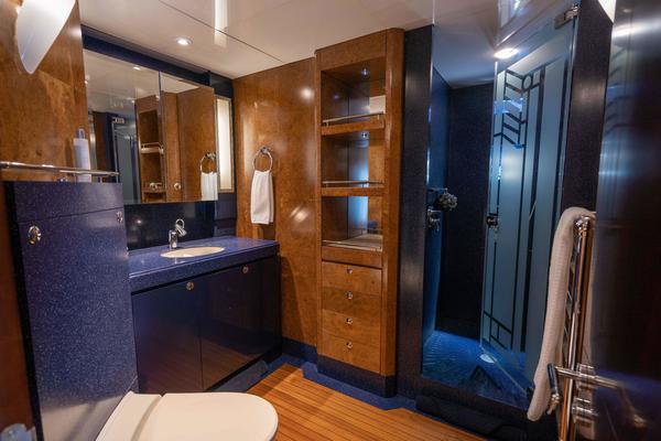 She was one of the last deliveries from Oceanfast and the legendary Jon Bannenberg. This is arguably the best Oceanfast ever built and the fit and finish of this steel hull and FRP superstructure yacht is exceptional. With the dark blue painted hull and Bannenberg styling, this is a yacht that definitely stops people when they notice her at the dock. The signature styling and contemporary interior has been masterfully executed by the Oceanfast design team, led by Craig Beale.