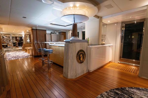 The overall layout of this 185' Oceanfast has entertaining and outside areas which are very innovative allowing maximum use of the space and provides many different areas on the yacht for the owner/guests to be, whether for private sitting/sunning or with the group.